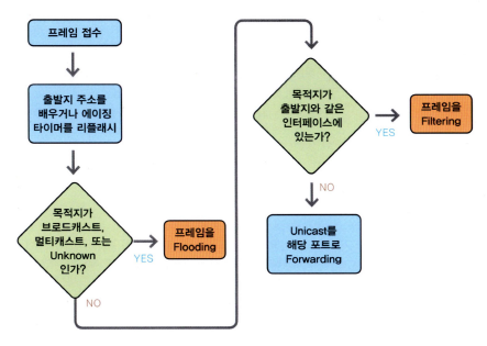 - 목적지 주소가 자신의 랜카드 MAC address와 일치하면