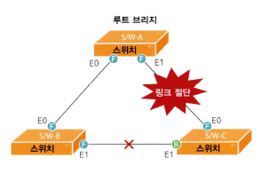 - 한 링크가 끊어졌을 때 스패닝 트리 프로토콜을 이용해