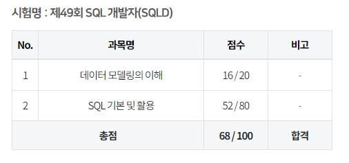 그 결과 높지는 않지만, 68점이라는 점수로 합격했습니다.